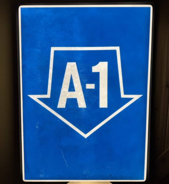 The A-1 sign measures 31.75″ wide by 42.5″ tall by 4.5″ deep and weighs 10 pounds. The seller believes the piece dates to the mid-1980s, when Ford advertised A-1 used cars.