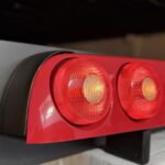This wall art was constructed starting in November 2025 by mounting a Ferrari F355 tail light panel and lights to a black laminate base reinforced with wood and aluminum. The seller notes that the tail panel was not altered when it was attached to the base and that it retains its red paint. The lights are controlled via a remote and illuminated by LED bulbs powered by a 120-volt cord. This F355 wall art is now offered at no reserve in Los Angeles, California.