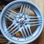 These 20″ wheels were manufactured by BBS for use on Alpina Roadster V8s, which were produced for the 2003 model year after standard Z8 production ended. The wheels have a silver finish and Alpina center caps. Casting marks on the inside surfaces include part numbers, measurements, and offset information. These Z8 wheels are now offered at no reserve in Joetsu, Japan.